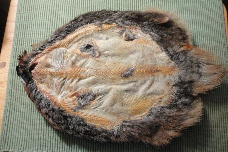 About skinning birds. I don't have pictures and have no bird I'm willing to sacrifice to show. I did it with headless chickens. It was easier to pull off for me that way. Some people can skin whole birds intact. I never did it that way.