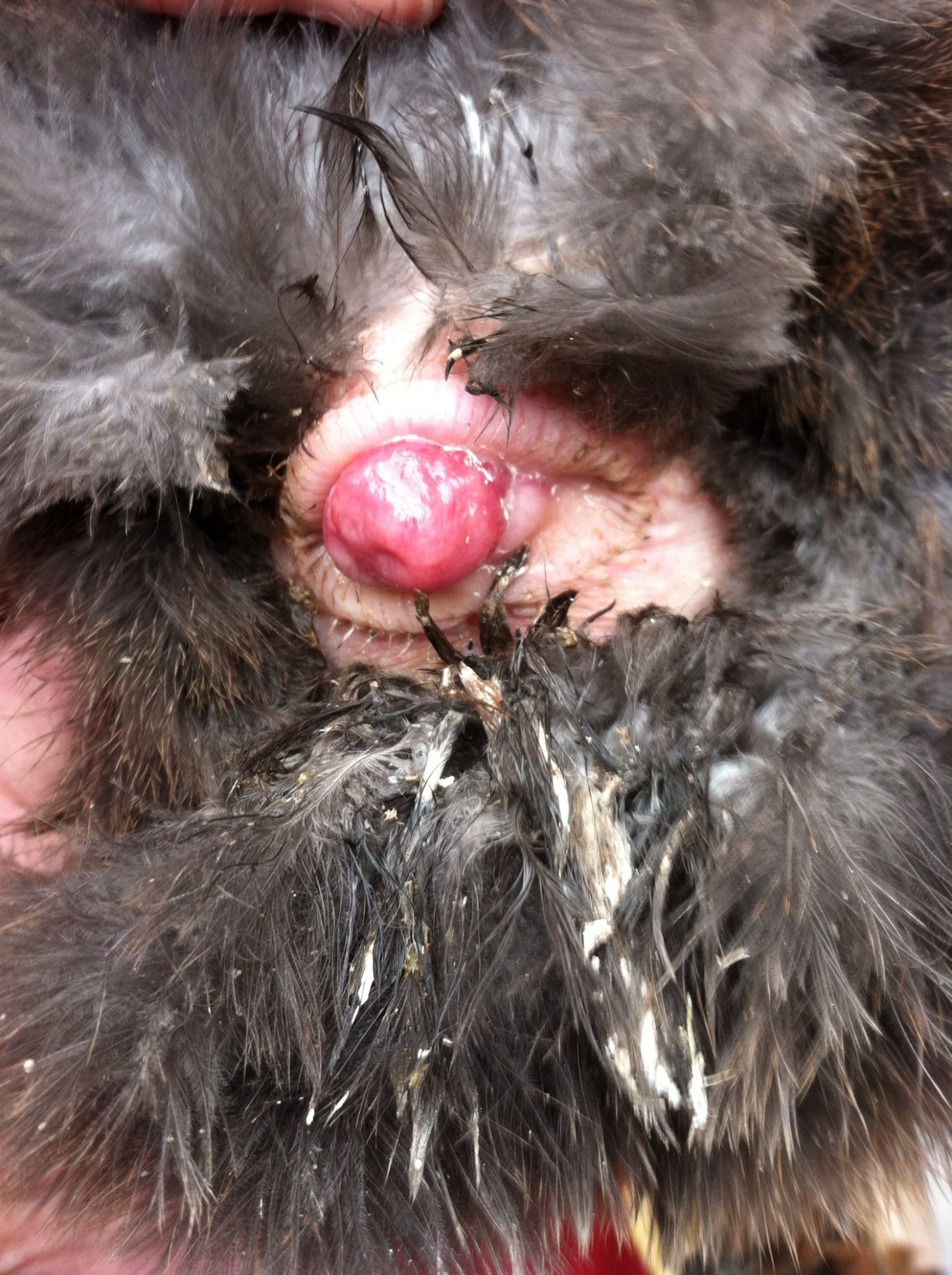 (I do know that with them banded different colors now it will make it easier to watch them and note changes. ESP the 2 with prolapse vents. They do go back in. Just the one was brighter red. But she has the defect in her comb to. But everything is written in a notebook now so I can look back and note any changes. It's like when u had a newborn and kept track of feelings and diapers lol