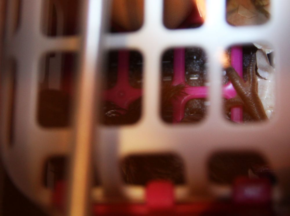 To keep my breeds separate so I can tell who is who, I put the DC in a pink and white dishwasher caddy and my Swedish Flower Hen egg is in a blue caddy. They snap shut to prevent escape.
