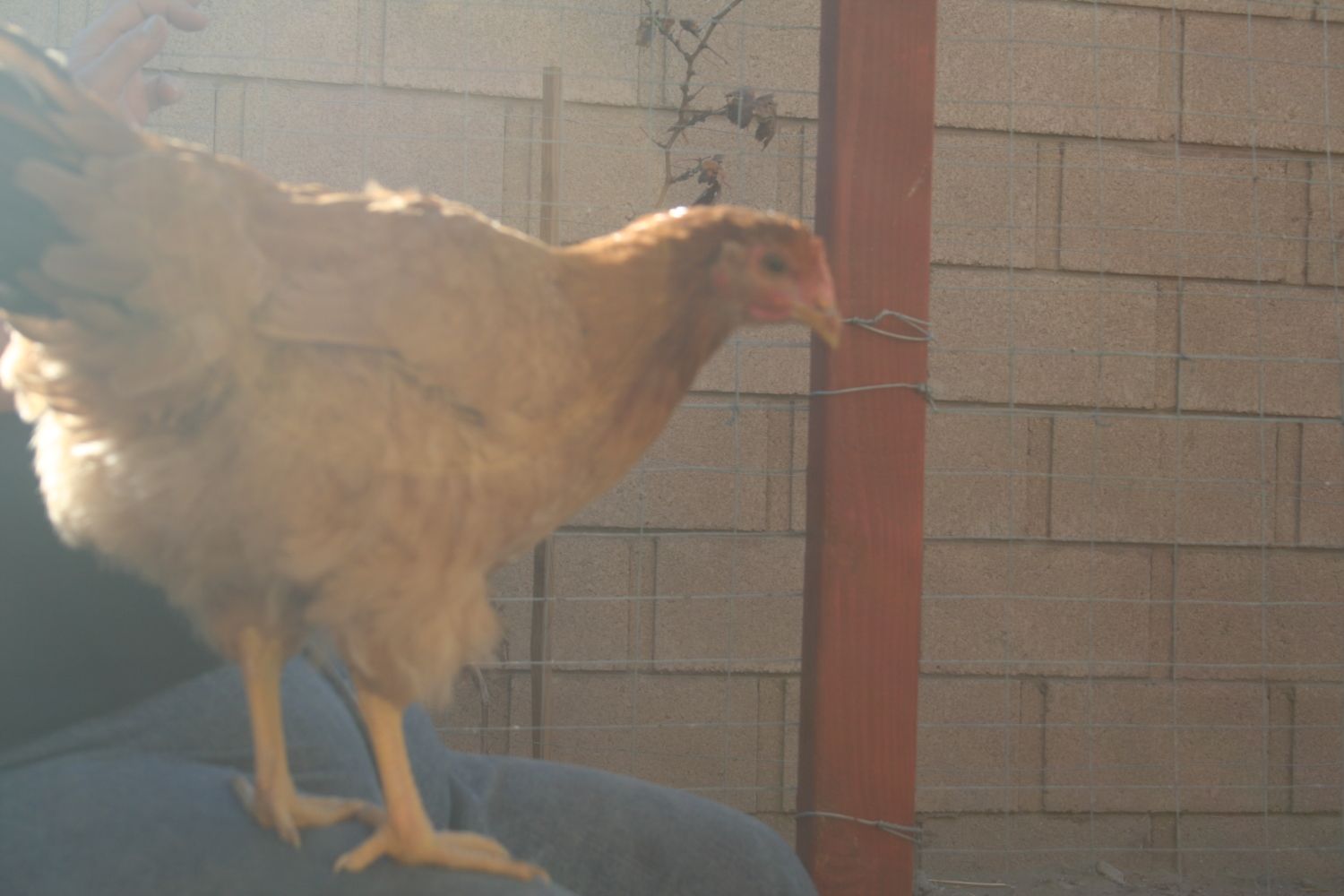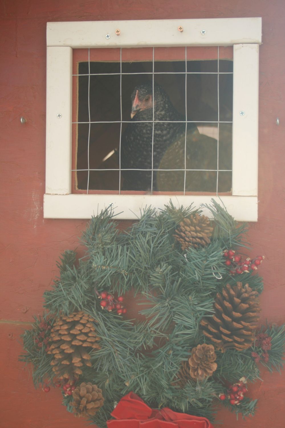 This is Ginger. She's the youngest and smallest. Even after repeated lock-downs, she prefers to roost in the cedars right behind the coop. Just like Ginger in Chicken Run, she longs for freedom, so, as of a couple weeks ago, she gets it. Don't know how long she'll last, but she is definitely happier. Hasn't started laying yet.