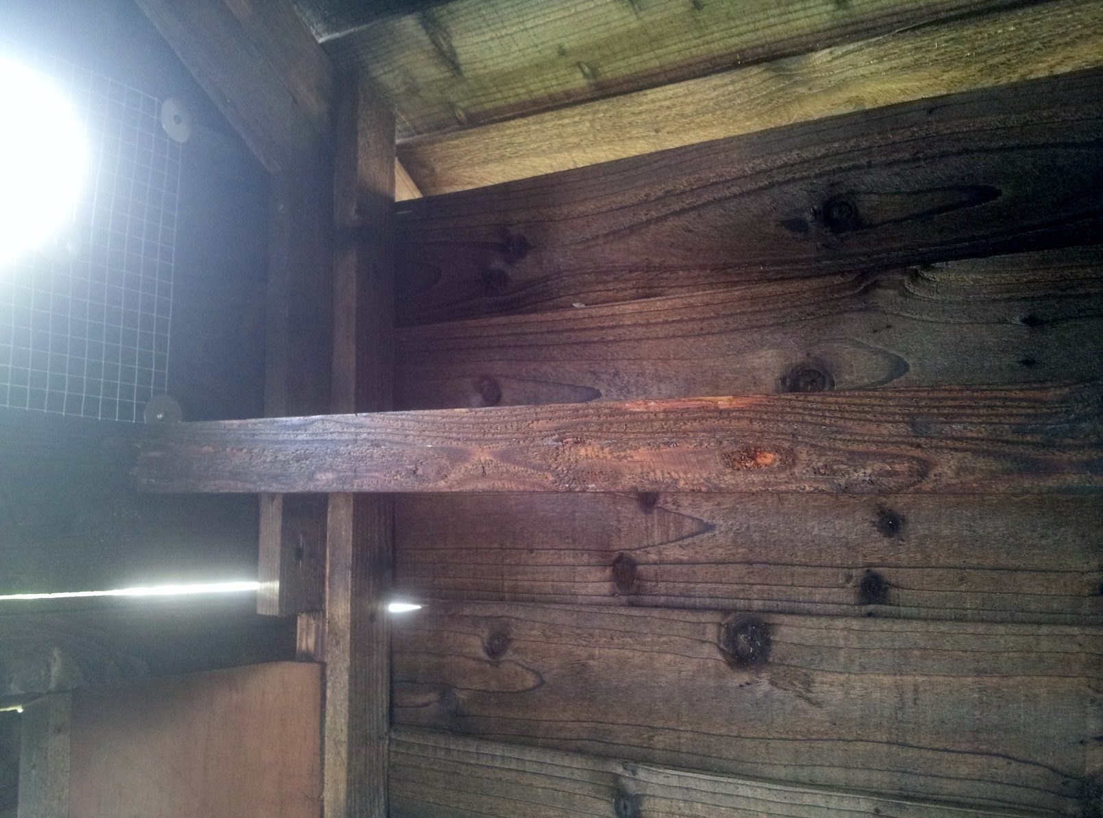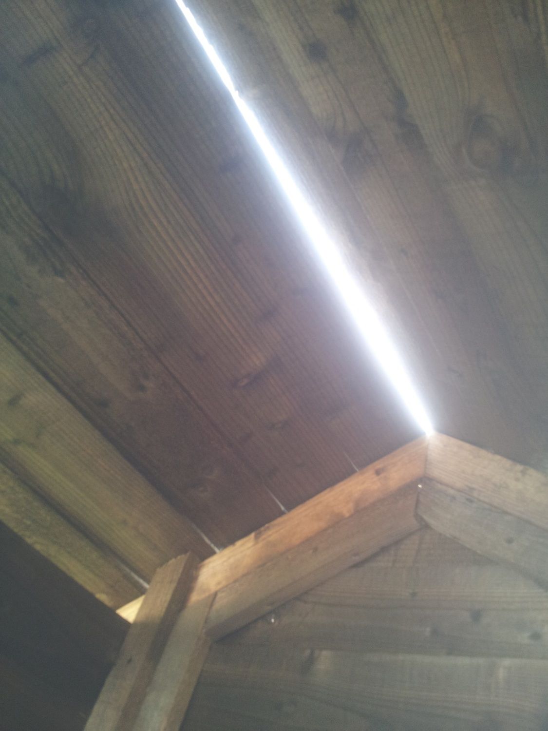 Can you see the light shining through the gaps? The boards where the carpenter was working weren't joined together flush, so we'll have to seal the cracks.