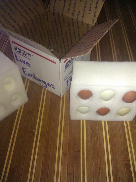 3- 12+ B/B/S/Chocolate Silkied Ameraucana eggs These are in my other auctions, as well, and I'm getting about 25% silkied and about 25% Chocolate/Mauve. Neither the Chocolate nor the Silkied feather is standard, so please be aware these are project birds with an occasional anomaly. There is no outcrossing to Silkies- the silkied feather comes from a spontaneous mutation. Start at $40, shipping 15.