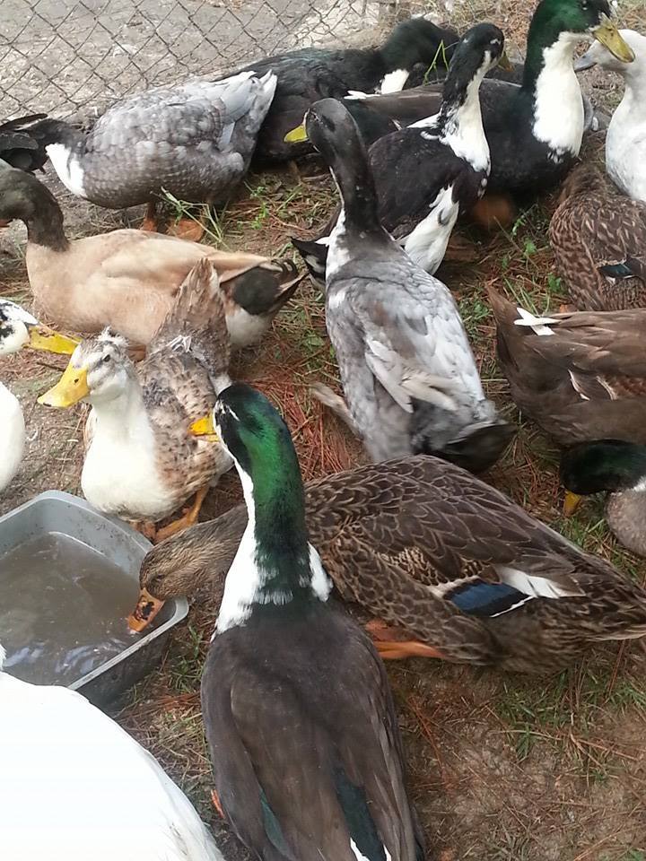 17 Mixed duck hatching eggs (in pen are pure rouen, Swedish, crested appleyard, and khaki cambell, 2 of the eggs are Pekin from another pen)- some of ducks in photo are not present anymore!