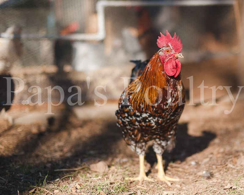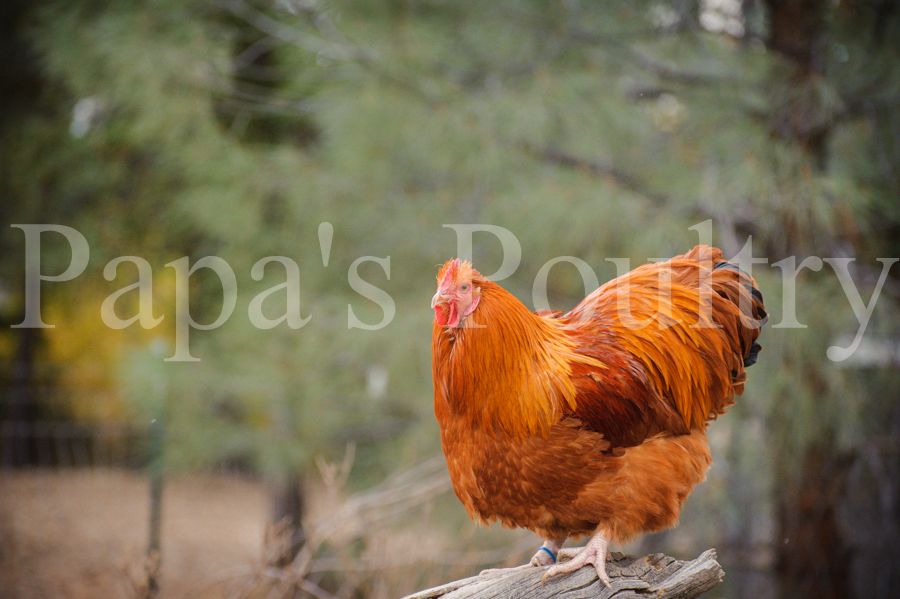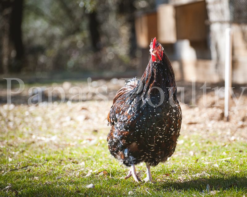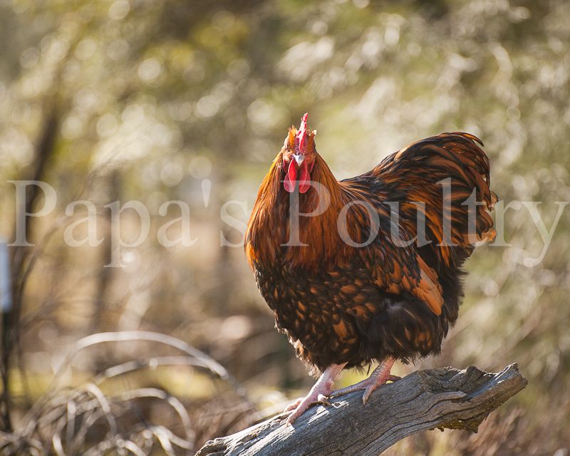 **please note: The split to chocolate F1 roo has a bum leg, as a result from an accident he had as a tiny chick. Because of this he doesn't get nearly as much "action" as the older black roo**