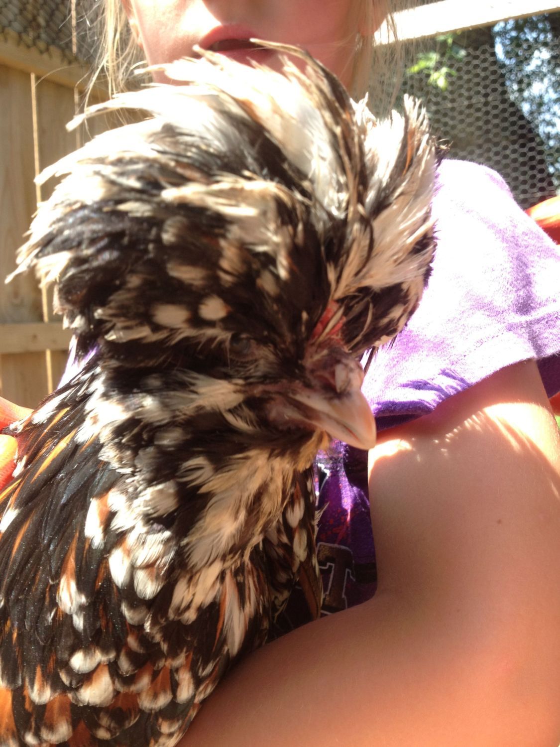 Do you have any more fpr auction?? My girl went broody today..6+ polish tolbunt hatching eggs for sale. Fertility is great and my incubator and brooders are full! Starting bid is 40, shipping included. They are Greenfire and Cromwell lines mostly. I have a smooth roo, a split roo and a frizzle roo over smooth, split and frizzle hens. Pictured are one of my smooth hens, a frizzle hen and my split roo. Auction will end at 11:00 tomorrow (Friday 09/26/2014). The eggs will be collected Saturday and Sunday shipped out Monday. 09/29/2014. This is a special price (over 1/2 off with the shipping being included) due to an EBay buyer not paying. Their loss is your gain! Grab some of these beauties before they area gone!![]()