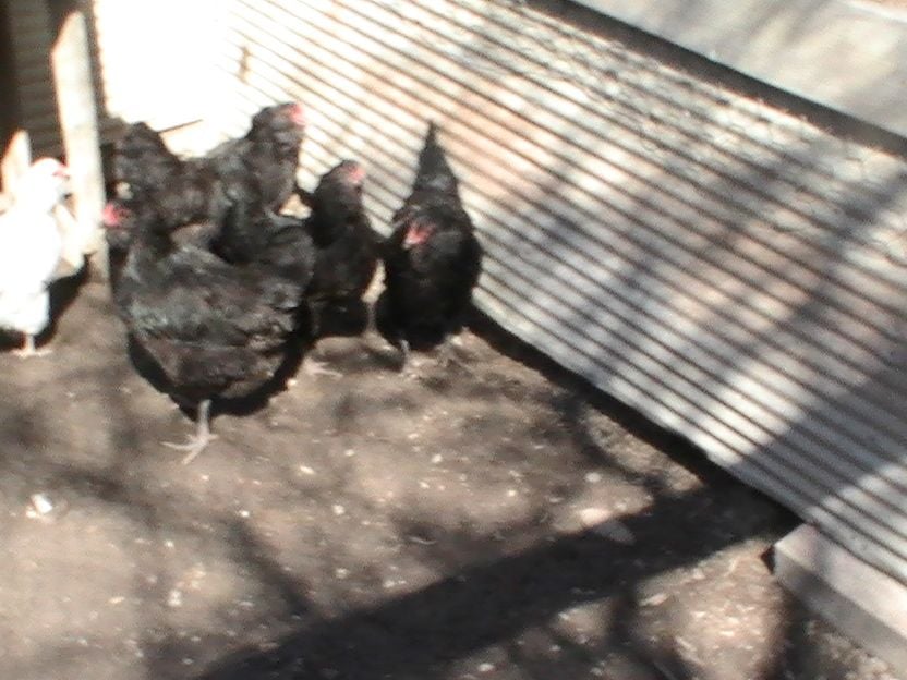 This is a new paint pen. The black roo came from Crystal Lake Farms and the hens and pullet are my line. The 2 hens are the ones with the spots. The pullet is mostly white but came from paint parents that I had The 2 hens are from those same parents. The pullet isn't laying yet. I haven't hatched any eggs from them yet but I did check fertility and they are fertile. When I get back from going out of town mid April I'll start hatching some but I don't want to put eggs in the bator right now so they are for sale. The rooster I plan to show but the hens are PQ. I"m hoping the roo will improve the chicks.
