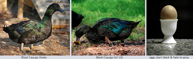 Outstandingly hardy, great foragers, and make excellent pets or meat (or both!) averaging 7-8 lbs live weight. These ducks aren't bothered a bit by the harsh winters of the northeast and the girls are good seasonal layers, giving me coal-black eggs early in the season which then fade to a dark grey-green. Mine haven't shown a strong desire to go broody so I usually stick the eggs under a broody Cochin.