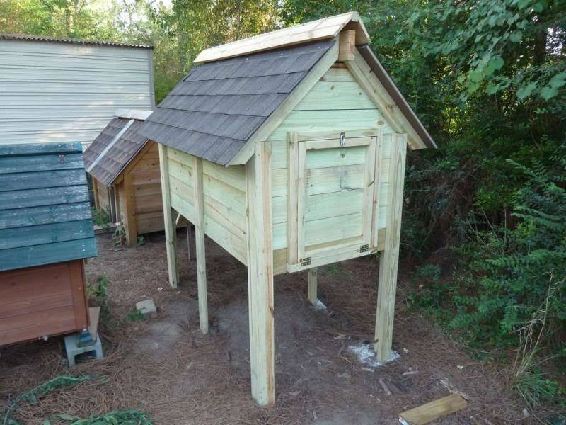 pen finished, chicken hut moved in, duck hut added below the chicken hut - will need to add some more ventilation to the duck portion now, but they are fence boards, so there are gaps between the boards for now