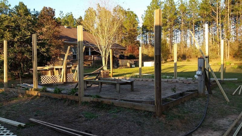 The garden had 4' fence posts. Gates and corners were cemented in, so didn't want to pull them. Decided to add to them and sandwich them with 1x4s. (the inside will also be covered with a 1x4 just to make it look cleaner and the front will be faced with deck boards to cover the wood sandwich still)