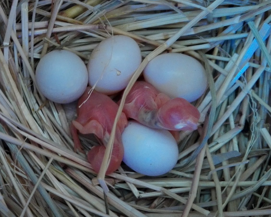 That little finch is so cute, I hope it gets some nest mates soon. That's interesting about the eggs turning colors...sure would make it easier if chicken eggs did the same.