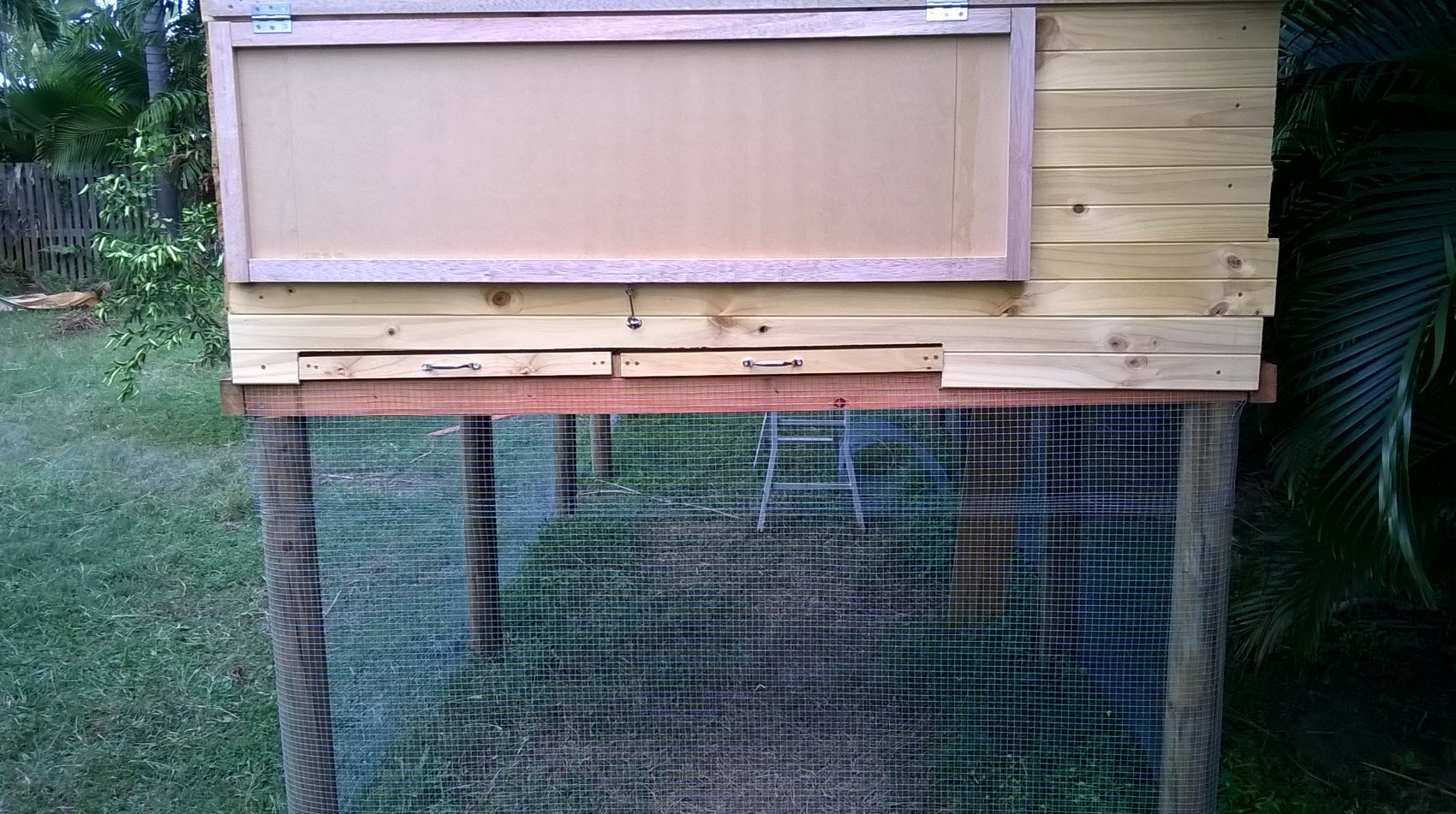 Just a couple of progress pics on the Forrest Beach coop which is nearly done .. just the run door, run trim, ramp and staining to go which is a good thing cos the girls fly out Friday. There is still some work required to the nest box area but that is not urgent cos none of the freeloaders are laying