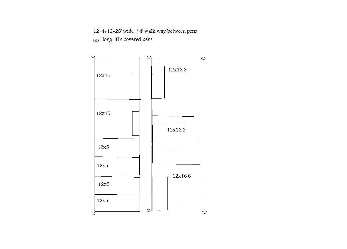 Here is a rough draft of the breeding pens I thought up? I told DH I want them all to be covered with a tin roof.
