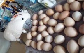 Rick and I have always wanted swans and we like Australian critters; got the Australian Cattle Dogs (I headed the petition to have the Australian Stumpy Tail Cattle Dog recognized by the Canadian Kennel Club in Miscellaneous classification--saw my first coupla dogs shown fully recognized at a local dog show, a few years back), had a Rosy Burke for a looong time (really kewl cage birds!), these swans are wild Down Under, and friends of ours have an Australian Cockatoo, Corky that really, really LUVs eggs...brought some of our excess winter eggs and Corky, he immediately took them over as HIS...