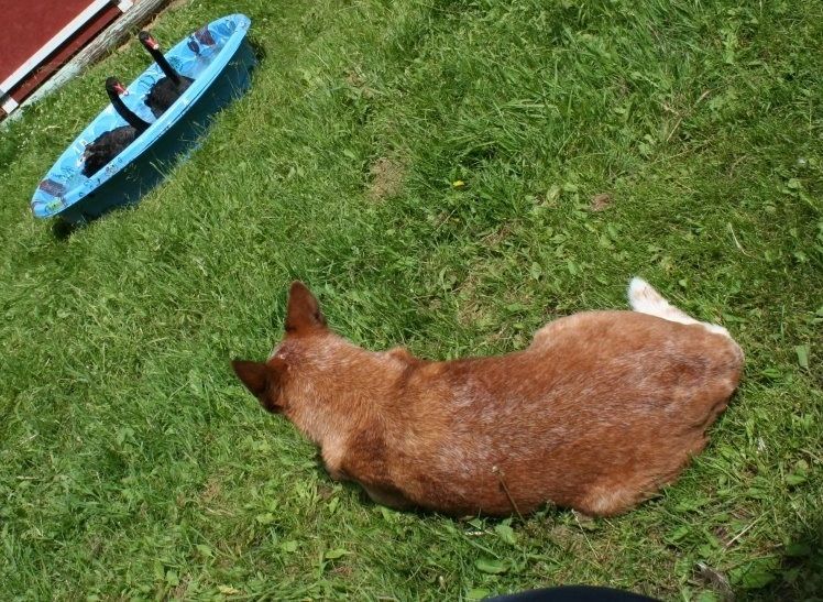 The cobs can be very aggressive in the Blacks; not the best breed for parks as they love to chase and attack small children. I am a very strong tempered person that loves taming the wild ones like Heelers and Shelduck/geese (known to kill others of their own kind and even domestic geese), so I just laugh when Smoke (the oldest cob) puts on a big show...wing slams and bill bites...he's after MEAT, eh? Well so am I...roast swan tongues anyone....I hear it is a Victorian delicacy or was that peafowl tongues?? I forget! I'm allowed, I'm OLD!
