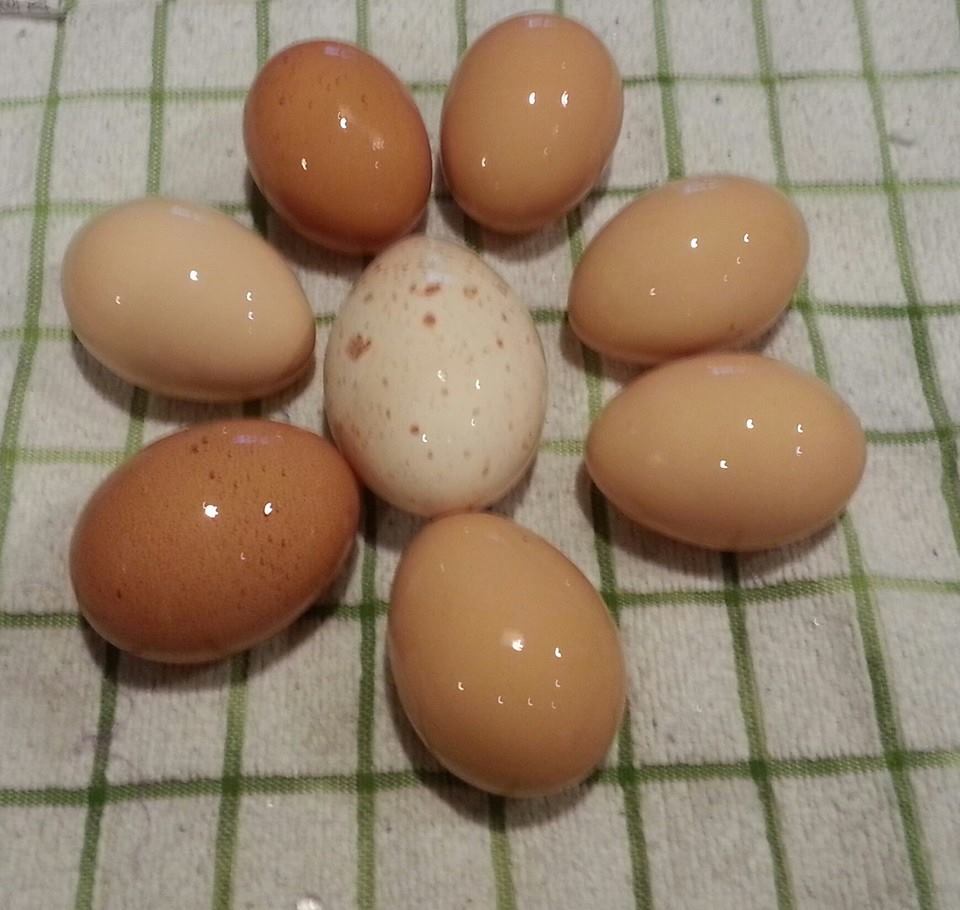 Sparkle still has her two satellite chicks wanting to snuggle under her, but they are the same size as their brood mother now and must only sleep right next to her. She stopped catering to them almost two weeks ago; she started laying again four days ago. She is VERY interested in the chirping of the new chicks.