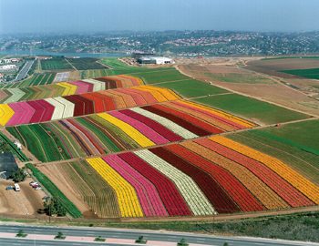 I LOVE that photo of the colorful lines of flowers! How cool! The daffodils have been up about two weeks and I saw a crocus coming up Saturday! The peach trees are blooming too.