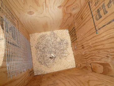 See the Mandarin hen above, in the far nest box entrance hole; she's been in, laying her clutch of Mandarin eggs.