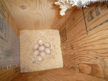 The young hen, she began laying too early (she did better the next year, began later plus I left dummy eggs in and took the beginnings of the clutch OUT to hold where they would not freeze--me learning too!) and hatched out seven!
