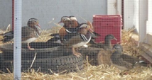 Starts out innocent enough...about middle of May (also when the real wild migrating Wood Ducks in our area begin also!), I note the captive wild Mandarin hens start visiting the nest boxes...