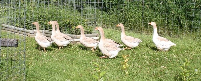 Conga line of one of the American Geese families--pair with six kids but not so "wee winged" in August!