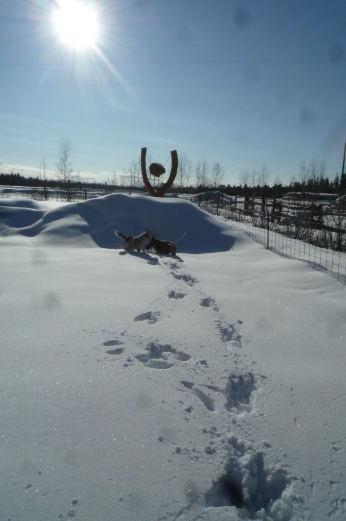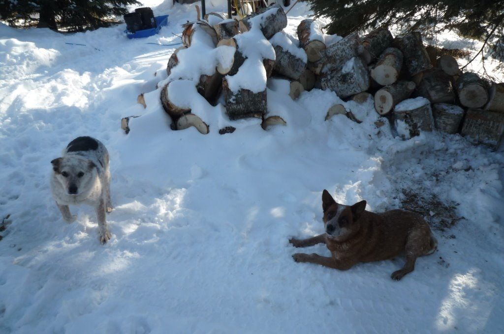 Not like the dogs are good at encouraging you to do things that need doing during the day...Rick comes home, need to unload the load of birch...look at the desperation and anticipation in these two faces? Yeh, all about play, eh?