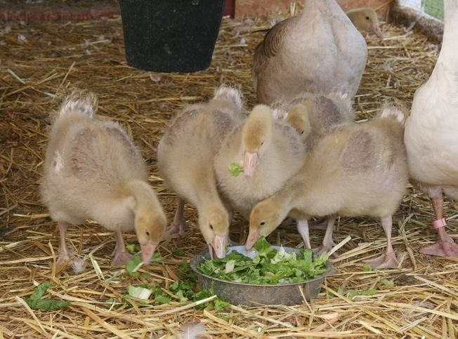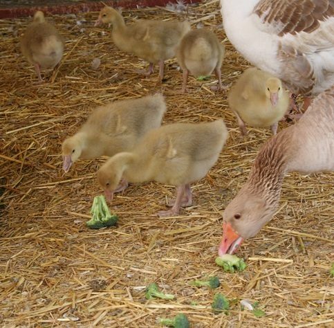 Broccoli flowerettes...nothing is safe from the bills of the geese...not even at gosling size...savage scoffers!