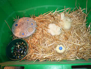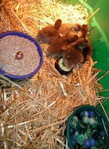 Call ducklings in one of the brooder bins