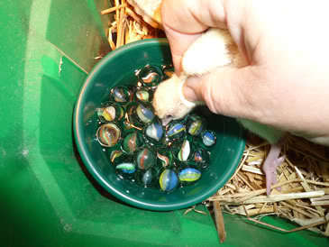 WATERFOWL: Use oat straw and limit to frequent adequate water infusions with marbles in it (dollar store, cheapy cheeps or is that QUACK or HONKs?).