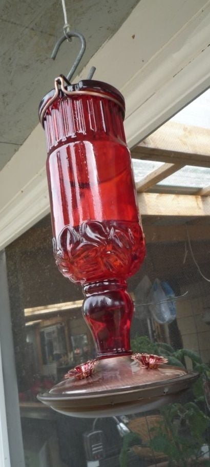 Rick bought two new hummingbird feeders to try out and already had one visiter this weekend.