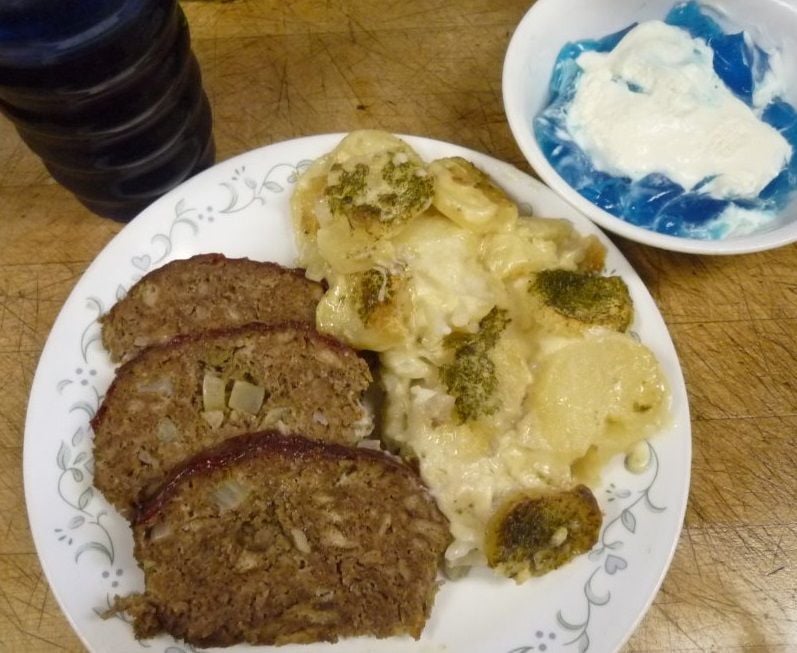 Yes, scallop potatoes and meatloaf...they compliment each other well and cook in the same oven...same heat, same amount of time...works great especially on days where you want to be out working not standing over the stove tending dinner!