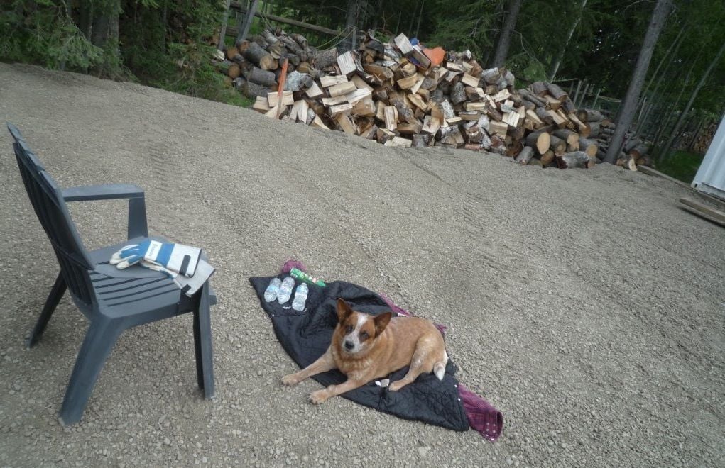 She was very relieved when Rick drove into the yard. I made him take her inside...the mosquitos were bad and I deeted my chore coat for her to lay on but she still made snuffle snort noises showing her disapproval of the stench from the bug spray.