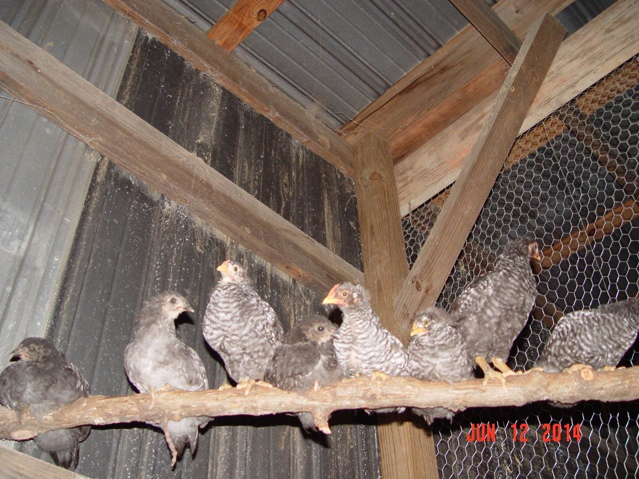 Baby chicks from the hatch. They finally got big enough to not get through the fence wire. They are 8' up on the roost...lol.