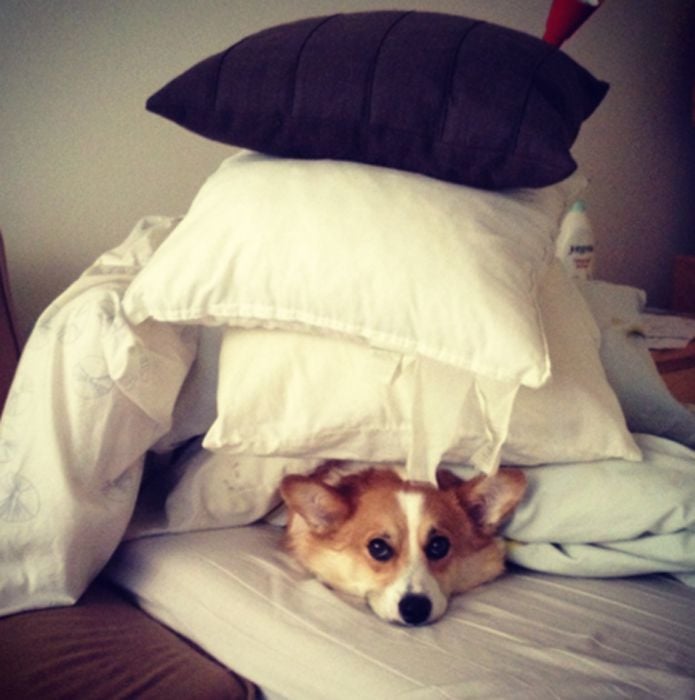 So you better not have eaten yer pillow...one less one for the dawg to hide under. Poor puppers!