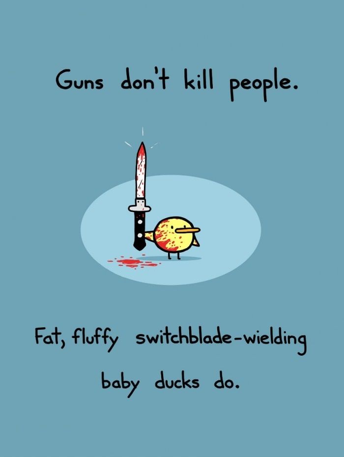 I used you Oz...I quoted you to be able to post silly jokes about "guns killing people!" or, ahem...getting to note that ducklings and candlesticks are much more dangerous so beware!