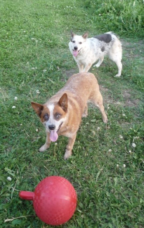 We went to three stores to find her a new bally with a better designed handle (chewy the handle off of is part of the game!).