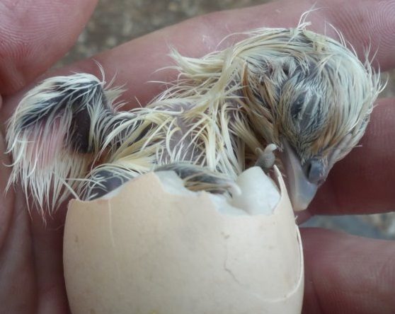 As each new bird hatches from their eggs, they are put in containers to dry off inside Buster the Bator...