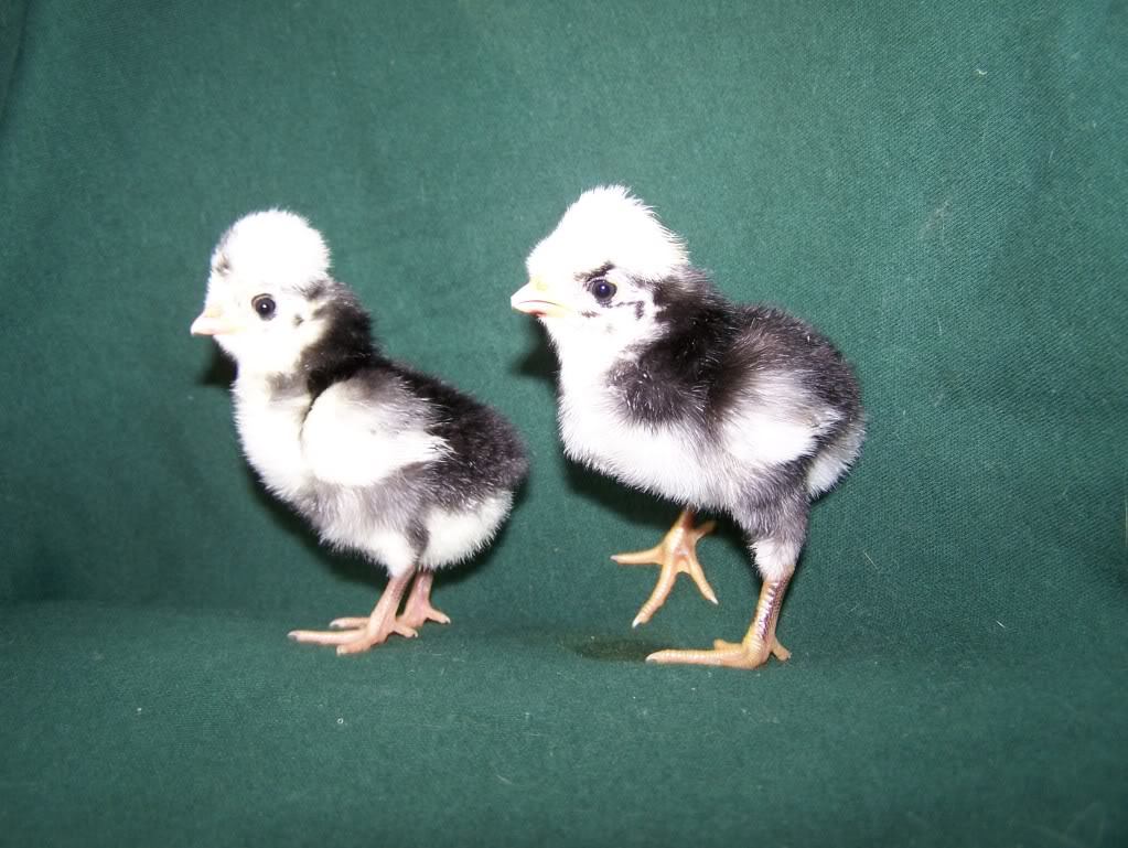 Here's a pair of WCB Polish chicks. The one on the left was a Bantam hen, the one on the right a standard Roo.