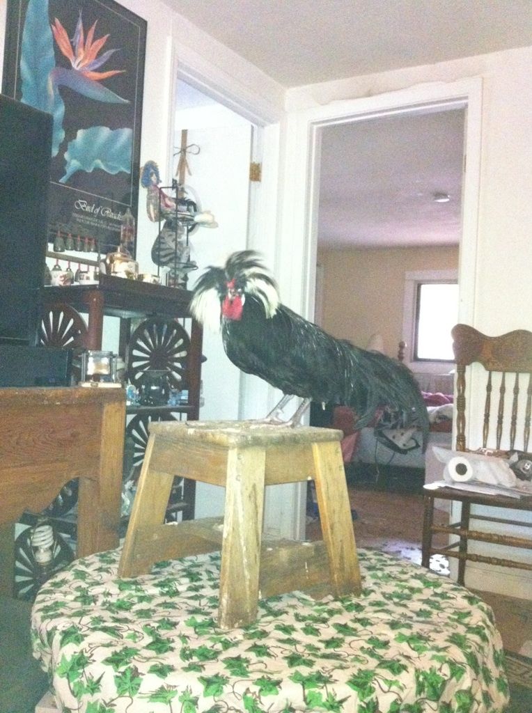 I feel sort of silly posting this, what with recent bad news certainly overshadowing it, but I found my house rooster, Jack, dead on the sofa this morning. He was still warm, but gone. My silly, special needs WCB Polish boy would surely have died months ago had I not brought him into the house permanently, after the third time he suffered crest and head pecking damage, so he had some very special time with me, but I didn't think he would die with so little warning.