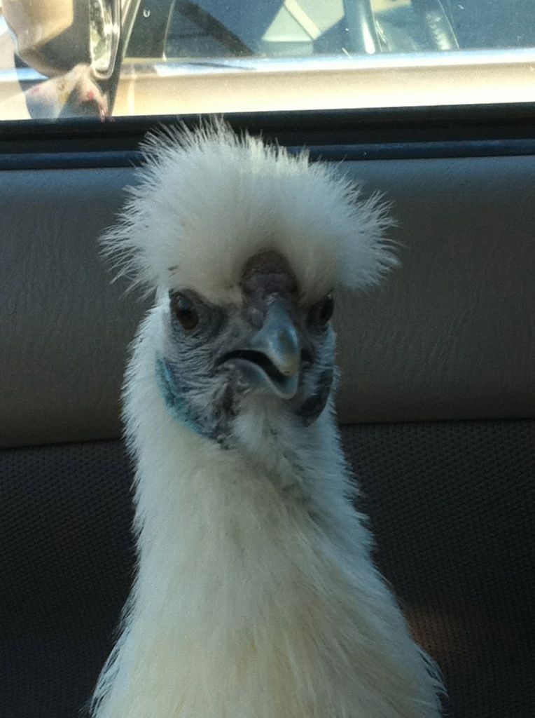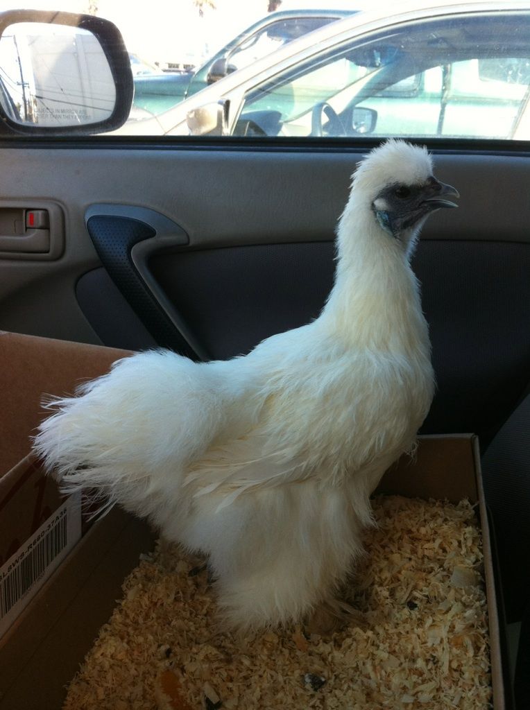 And then, what has cheered me immensely today was picking up Sparkle, the silkie hen another BYCer needed to re-home - and *I* was selected (mostly because of my explanation about my House Chickens).. These shots were all taken while we sat in the parking lot after the exchange.