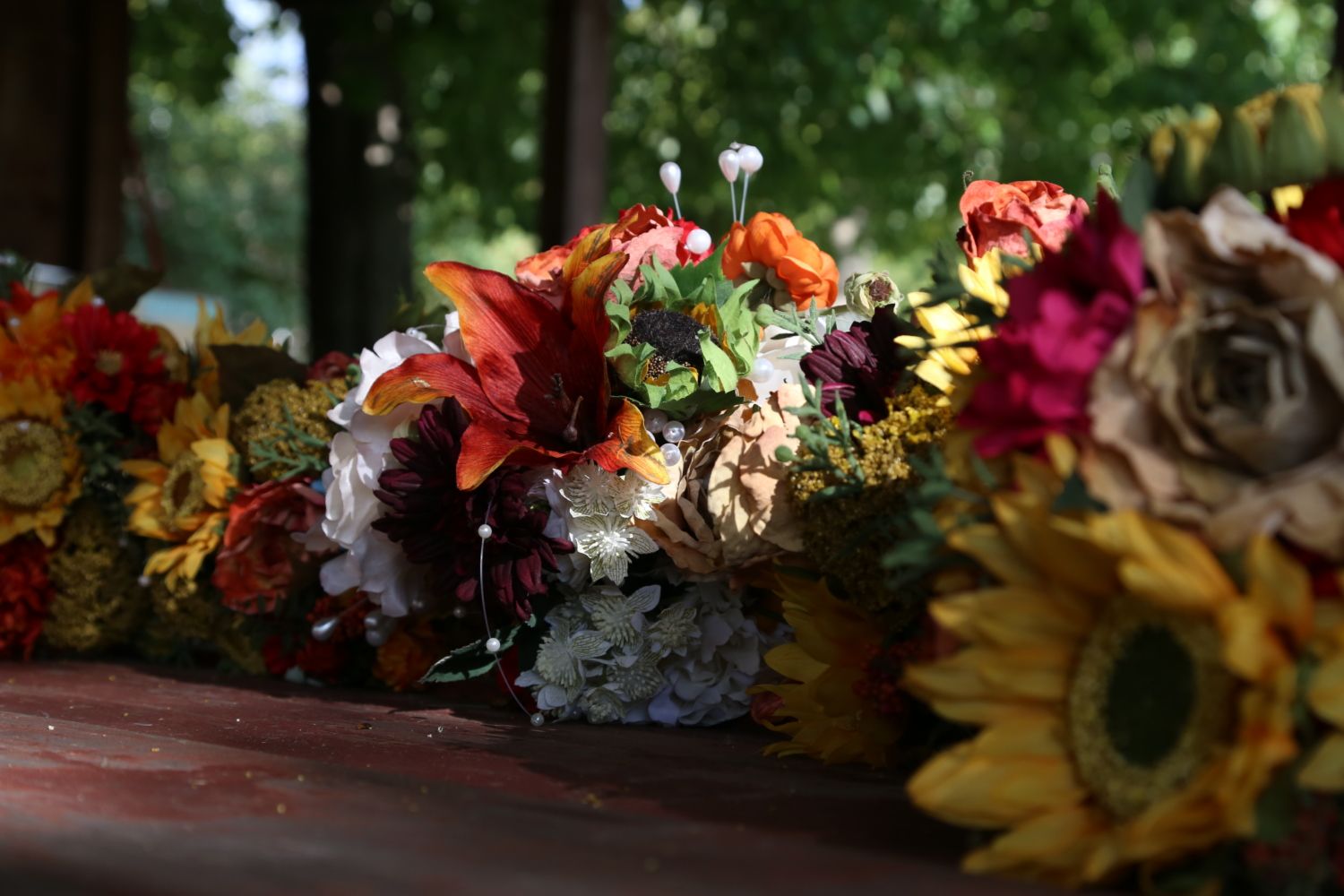Wow, it looks like it's going to be a beautiful handmade wedding.Well we are up in NY for DD's wedding. So far it has been super busy. Yesterday DH and I made 150 enchiladas for the rehearsal dinner on Friday. That took forever. While that was going on, DD and her cousin made the bouquets and aisle floral arrangements.![]()