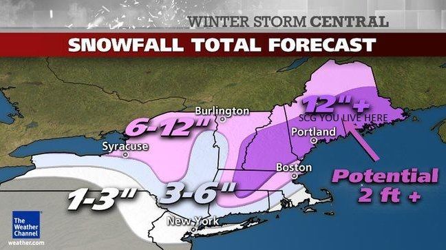 SCG--I saw that report yesterday--today the model is different, or maybe I'm watching a different station . . . . the darkest coloring has moved south !! I was in the mid ranges, but now will get the full load of snow. Planning to keep the kids home tomorrow. ANd today is run around like a maniac to prepare day. It's New England.