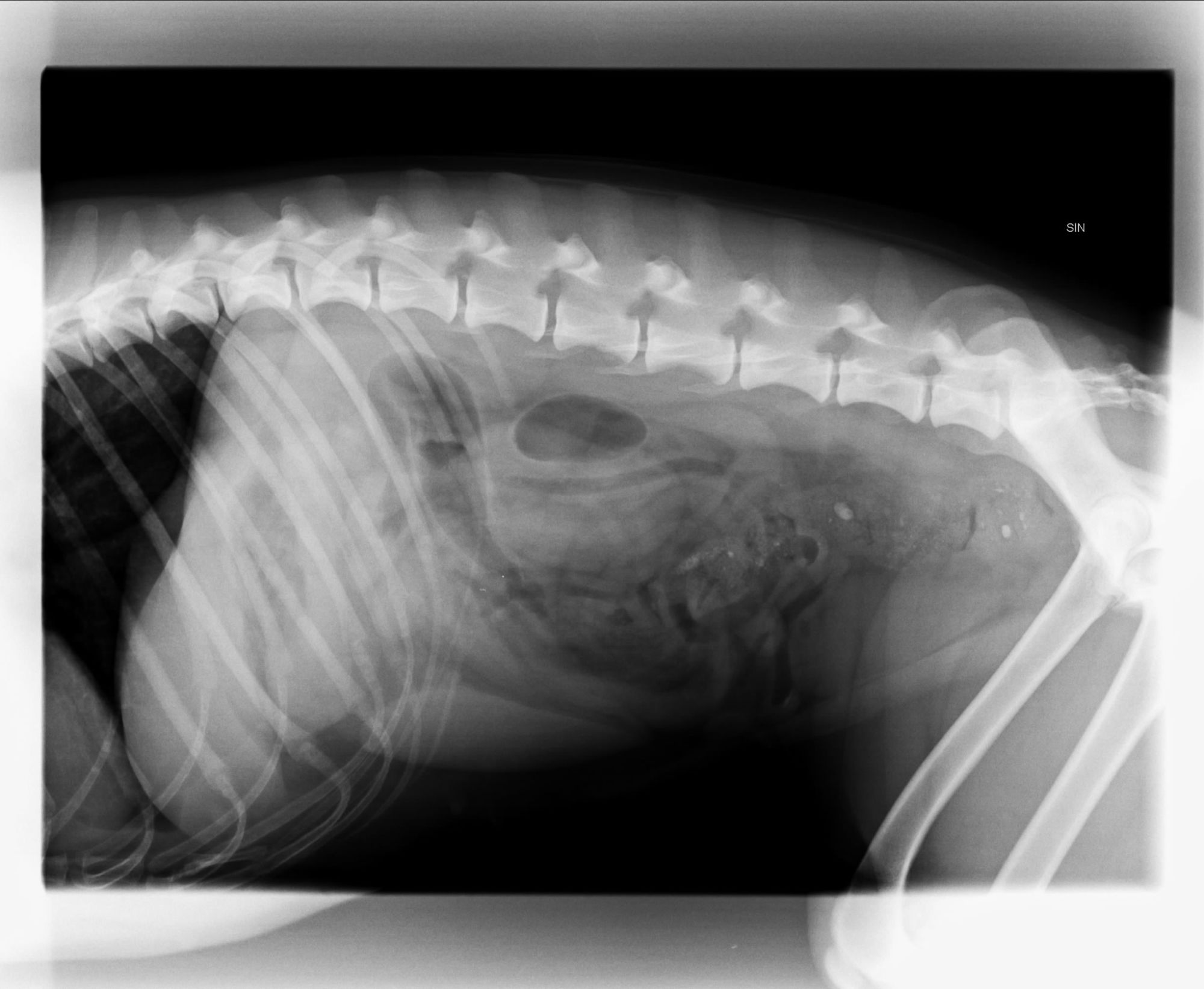 Karin just called, she's headed home. Second opinion was that there wasn't anything there, so no endoscopy yet. We'll have to monitor her over the weekend and see.