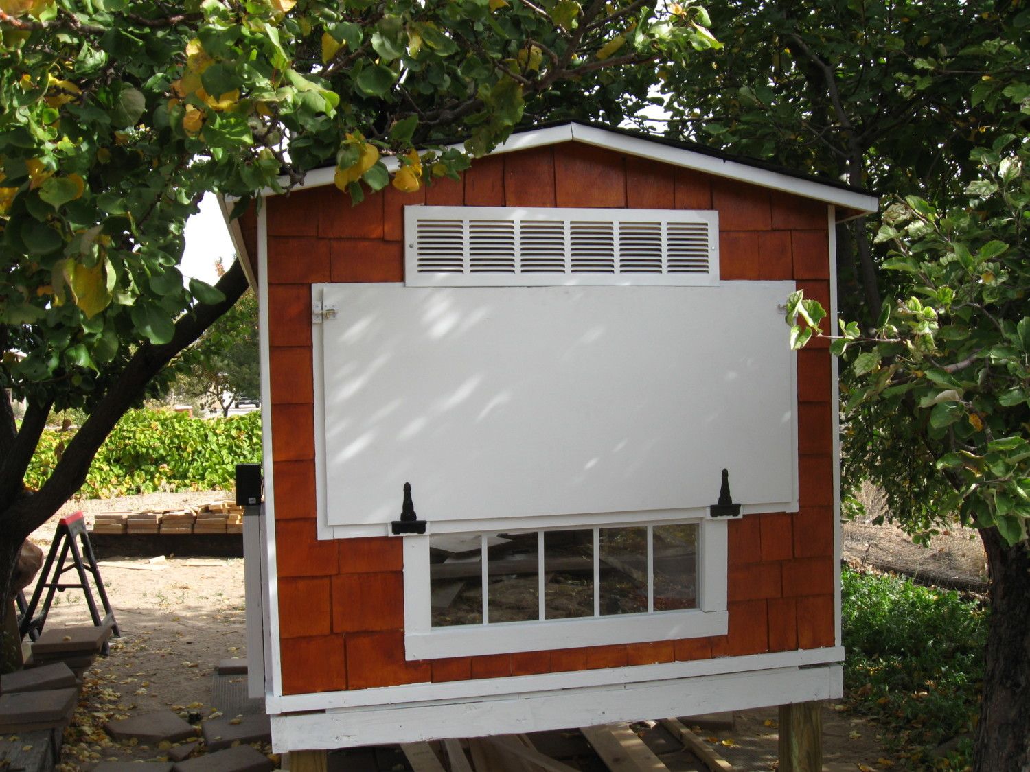 (Covered run still to be completed -- ergo the automatic coop door has been disconnected -- but that will be November's project)