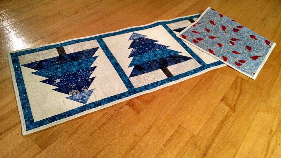 I am almost done with them all, I've finished 3 so far and have a 4th to bind, hopefully tomorrow. I made two red and gold ones for my two moms and I'm actually surprised how much I like the red ones compared to the two blue that I've made. One of the blues will be for me, and I still need to figure out who is getting the other blue one. With these done and out of the way I have a quilt to hopefully finish (and if not, because I'm cutting it close, it will be gifted next year) and then I've got all my "made" Christmas gifts done.