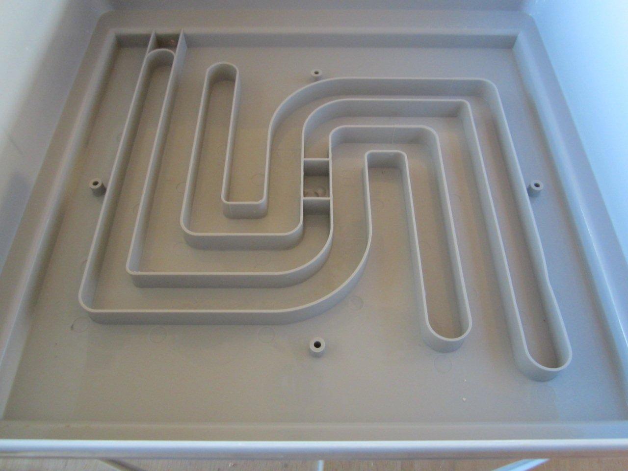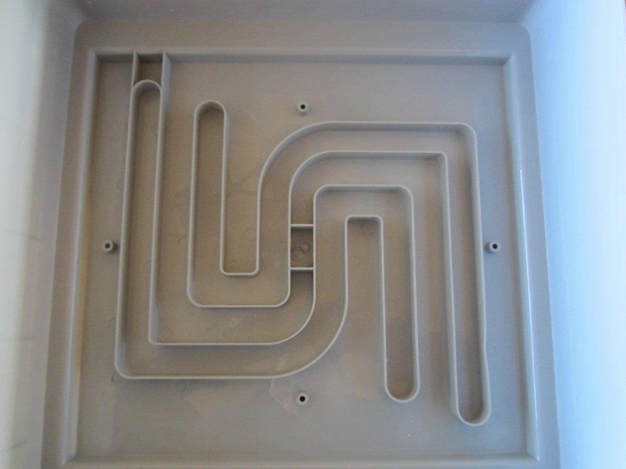 The hatcher has a fairly small door with a slide out hatching drawer. The air is drawn across the eggs/hatchlings with a bank of 4 fans up through a channel on the left side of the incubator past a low set point heat source, across a water reservoir above the incubator and down across the high set point heat source down to another water reservoir and back across the eggs. I lose very little moisture when I open the hatcher since the volume of humid heated air is so great in relation to what can escape the door.