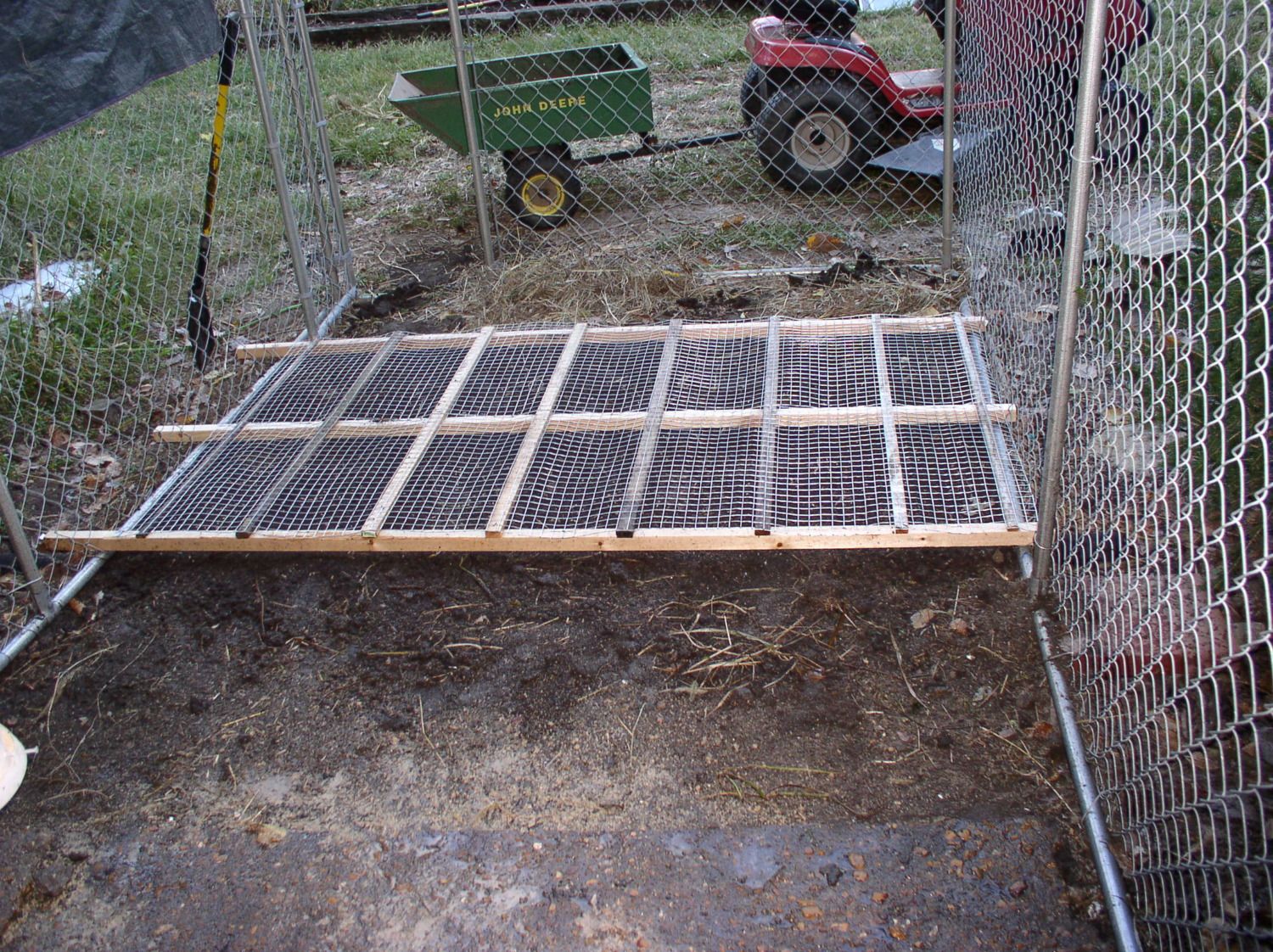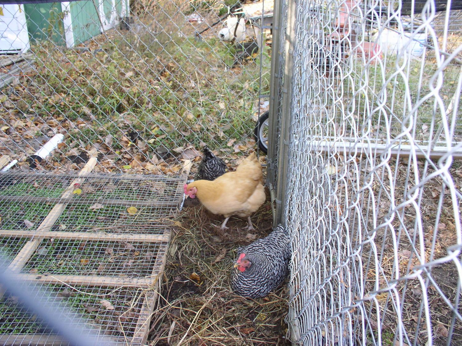 They can get some fresh greens each morning as they emerge above the wire but they can't kill them by scratching. I still have some space for dustbaths.
