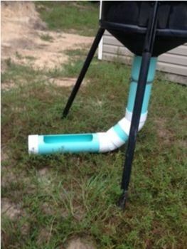 You're welcome! Thanks for posting it in the first place. I like it! I think I'll try a similiar version in my run this summer! awesome!Thanks, CW! On closer inspection and reflection, I used the hole saw to make four holes and then connected them with the jigsaw, but you see the basic structure. I am very happy with this design. The S&D pipe and fittings cost much less than the 4" PVC, I realize that not many people have access to old deer feeders, but I was thinking that an old plastic water cooler jug in a frame would work as well.