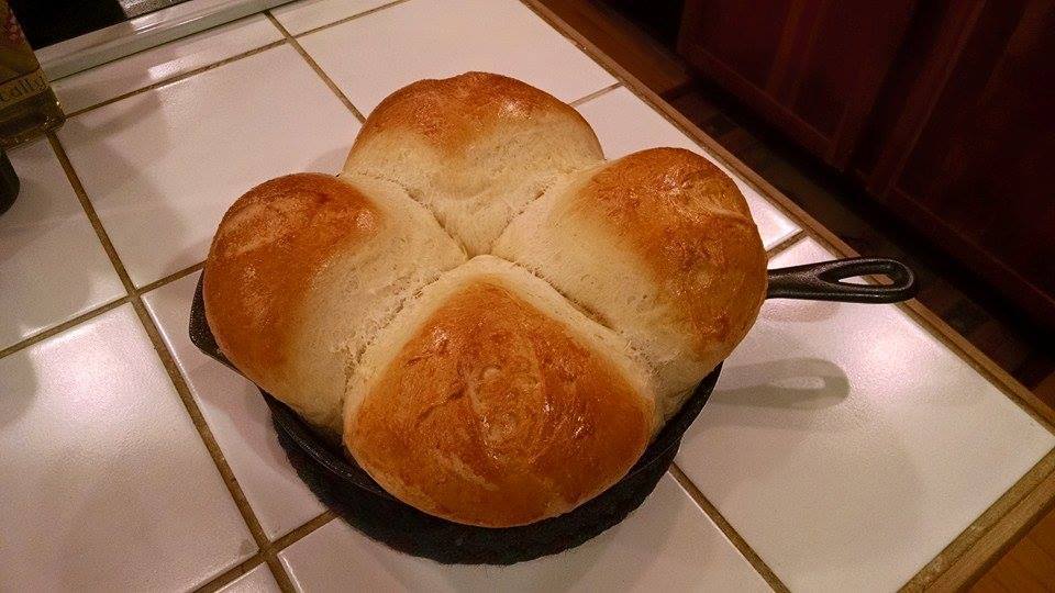 I have to admit they're in a 12 inch diameter cast iron pan... so not quite rolls but more like 4 half-loaves. Ron has a great recipe for trinity rolls, which is the same idea but put into tins for rolls. Maybe he'll post that for you.