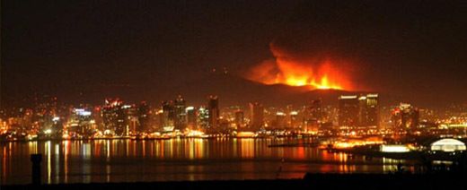 San Diego during the Cedar fire 2003 The haze around the buildings is smoke