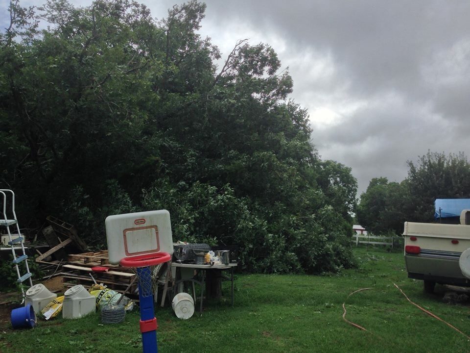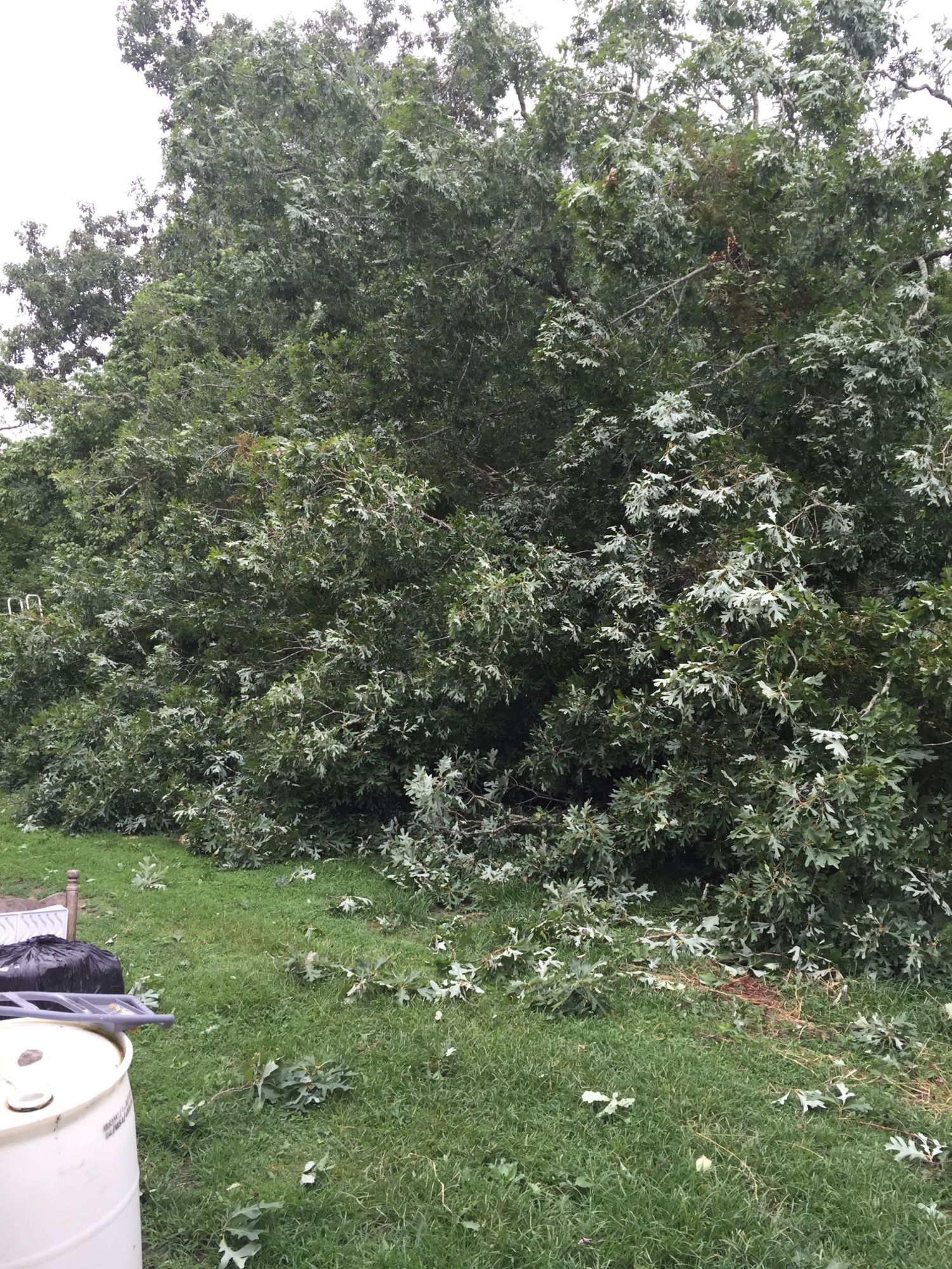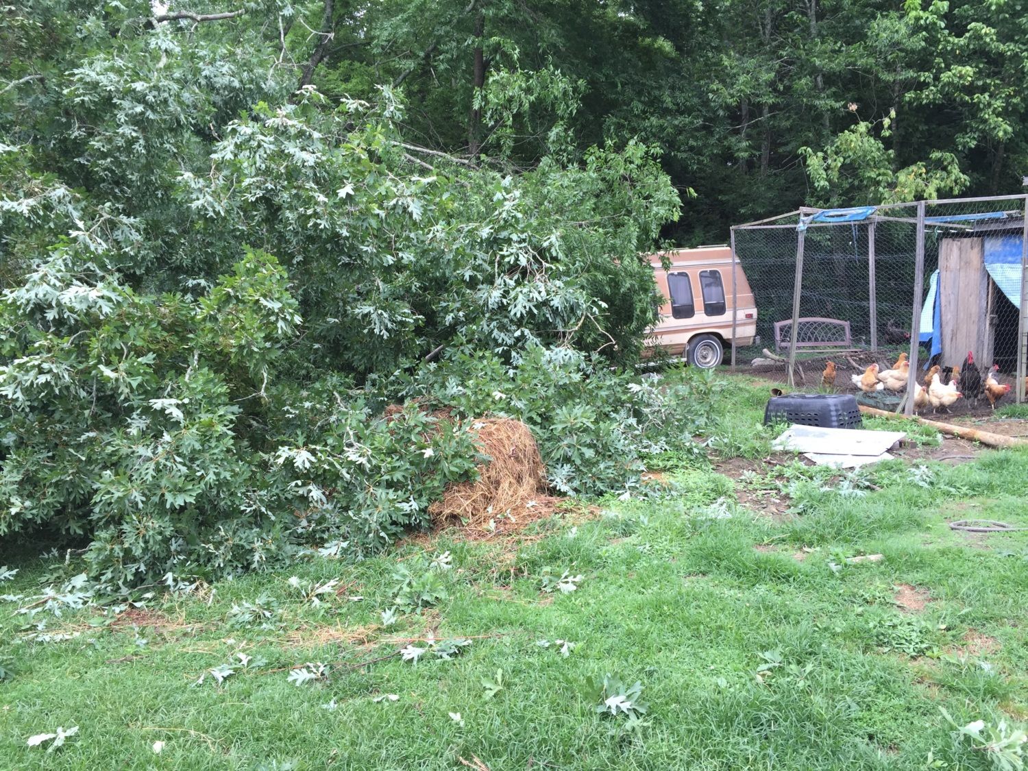 We do have a wood stove so the wood won't go to waste. DH also wants to make a coffee table out of a slice of it. It has a huge circumference. Someone was looking out for us, that's for sure. I'll get pics of the rest of it when the rain slacks off. If a tree falls in your yard and everyone is asleep does it make a sound? Apparently not.Whoa! I hope you have a wood burning stove or fireplace to use up that old tree! Aren't you lucky!